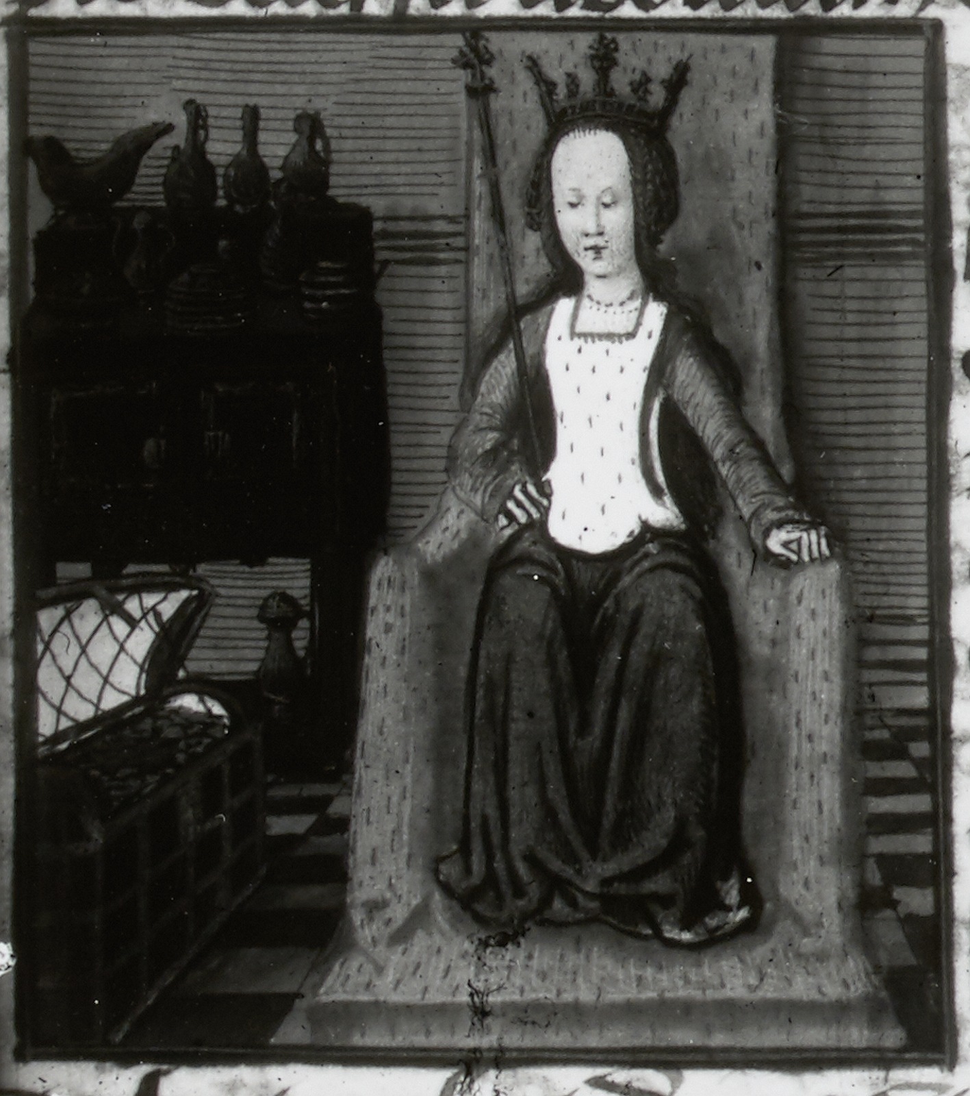 Miniatore di Bourges (1490 c.), Medusa seduta sul trono