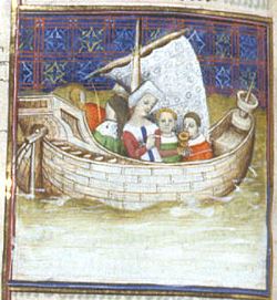 Londra, British Library, Royal 20 C V, f. 110v. Teossena avvelena i suoi nipoti sulla nave.