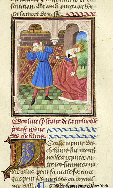 New York, Pierpont Morgan Library, M 381, f. 13r. Giocasta si suicida ed Edipo si cava gli occhi.