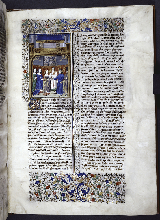 New York, Public Library, Spencer 33, f. 45r. Viene celebrato il matrimonio di Scipione Africano e Amelia.