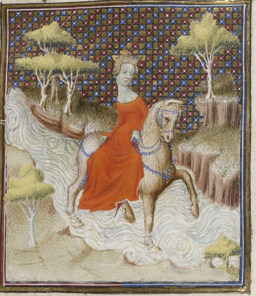 Parigi, Bibliothèque Nationale de France, Fr. 598, f. 81r. Clelia attraversa il Tevere a cavallo.