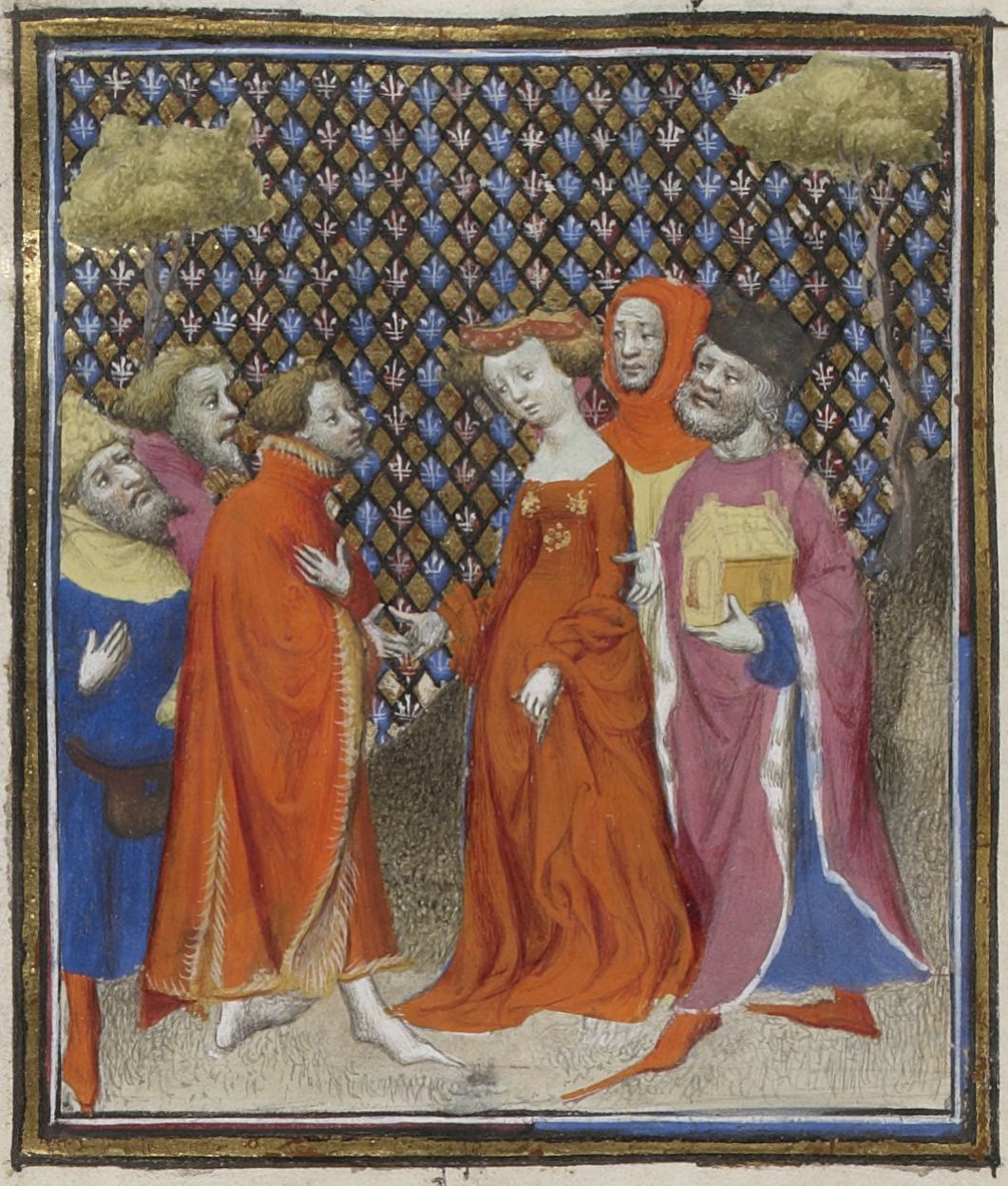 Maestro delle Clères Femmes e collaboratore (1403 c.), Megulia Dotata riceve la dote per il matrimonio