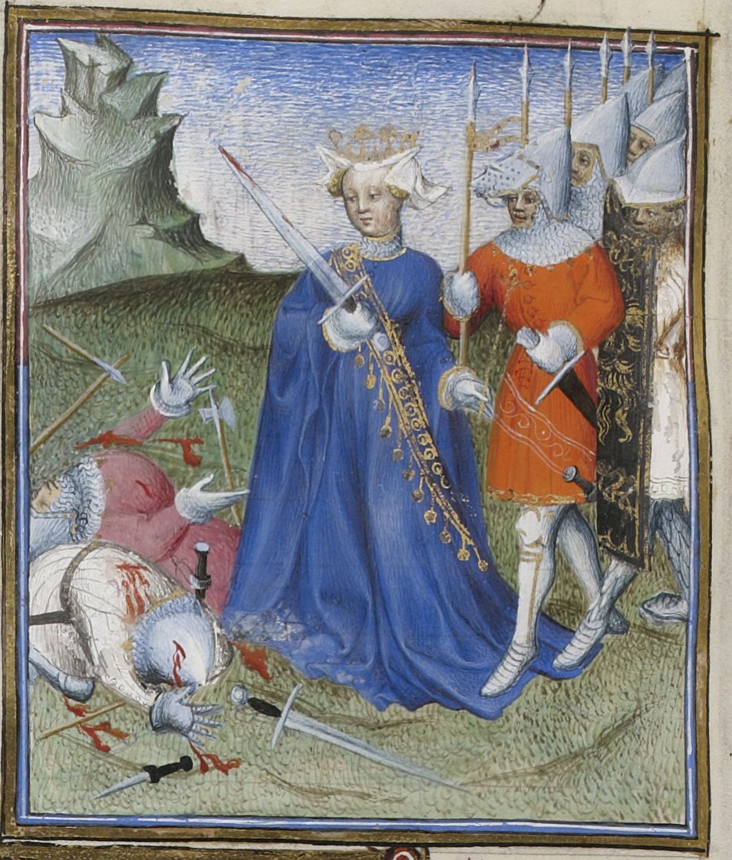 Parigi, Bibliothèque Nationale de France, Fr. 598, f. 86v. Artemisia guida l'esercito sul campo di battaglia.