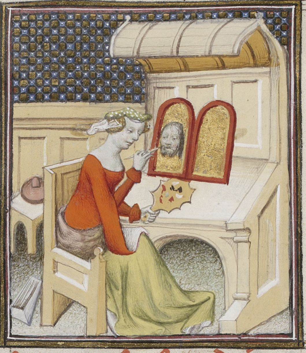 Maestro delle Clères Femmes e collaboratore (1403 c.), Irene dipinge un volto