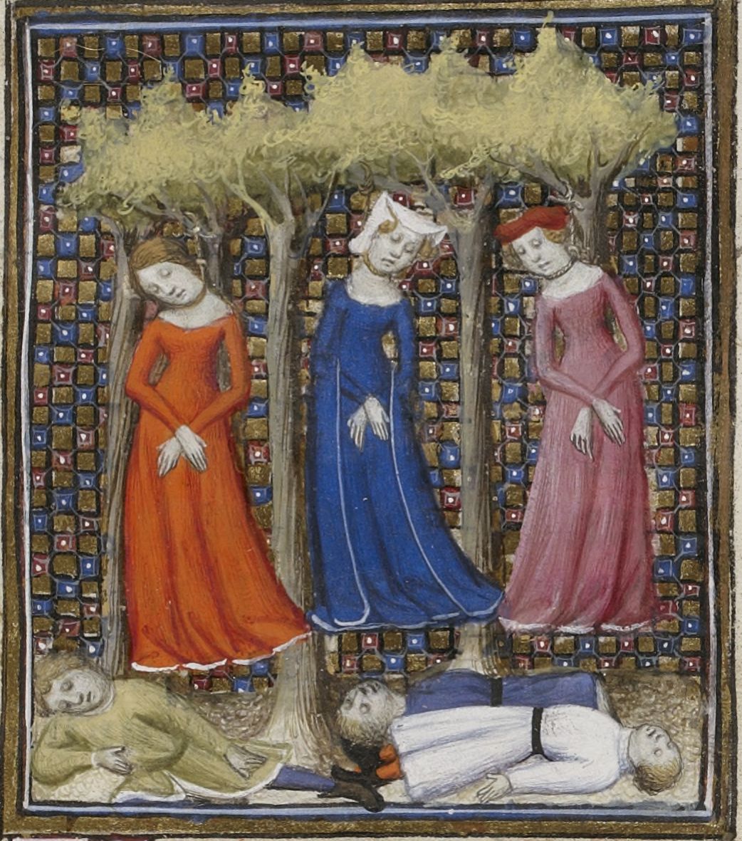 Maestro delle Clères Femmes e collaboratore (1403 c.), Le mogli dei Cimbri vengono impiccate