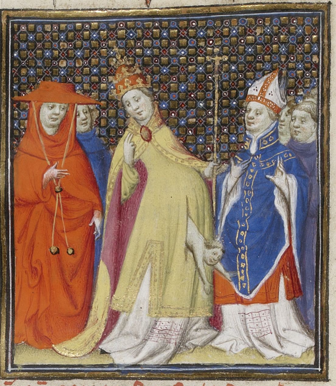 Maestro delle Clères Femmes e collaboratore (1403 c.), La papessa Giovanna partorisce durante una processione