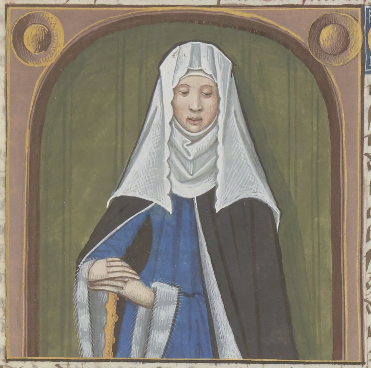 Parigi, Bibliothèque Nationale de France, Fr. 599, f. 91r. Il copista del manoscritto è Johannes Michel. Camiola appoggiata ad un bastone.