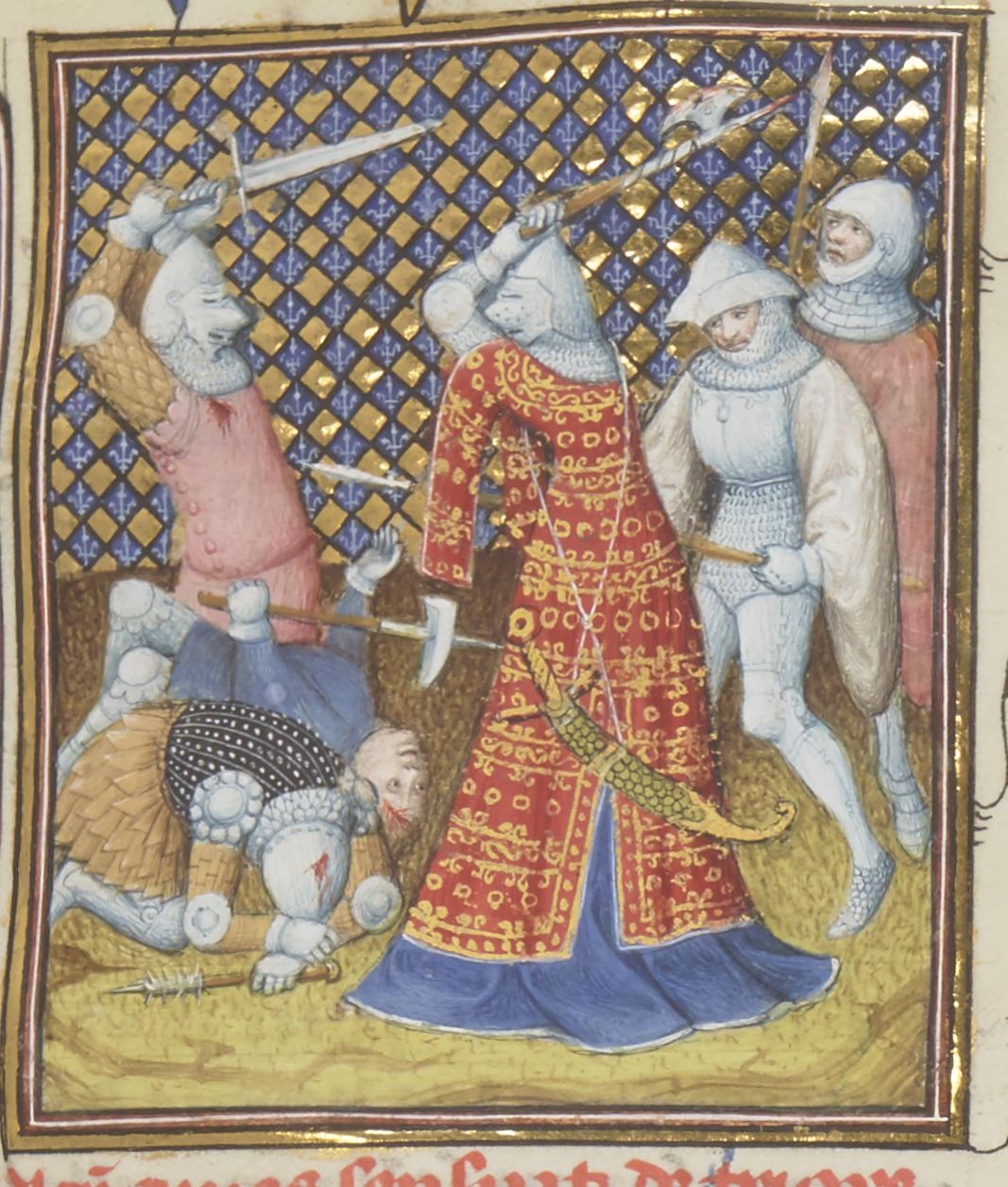 Parigi, Bibliothèque Nationale de France, Fr. 12420, f. 146r. Triaria si unisce ai soldati in battaglia.
