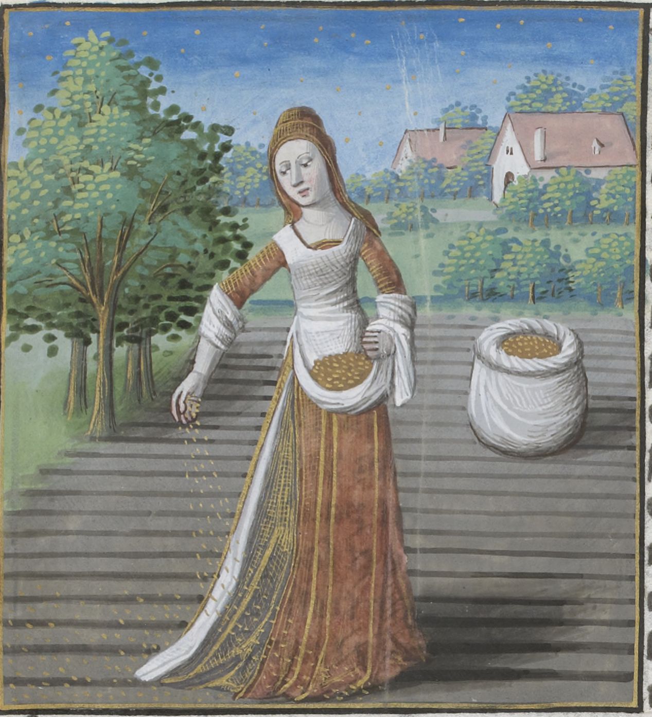 Maestro di Jacques de Besançon (1493), Cerere semina in un campo