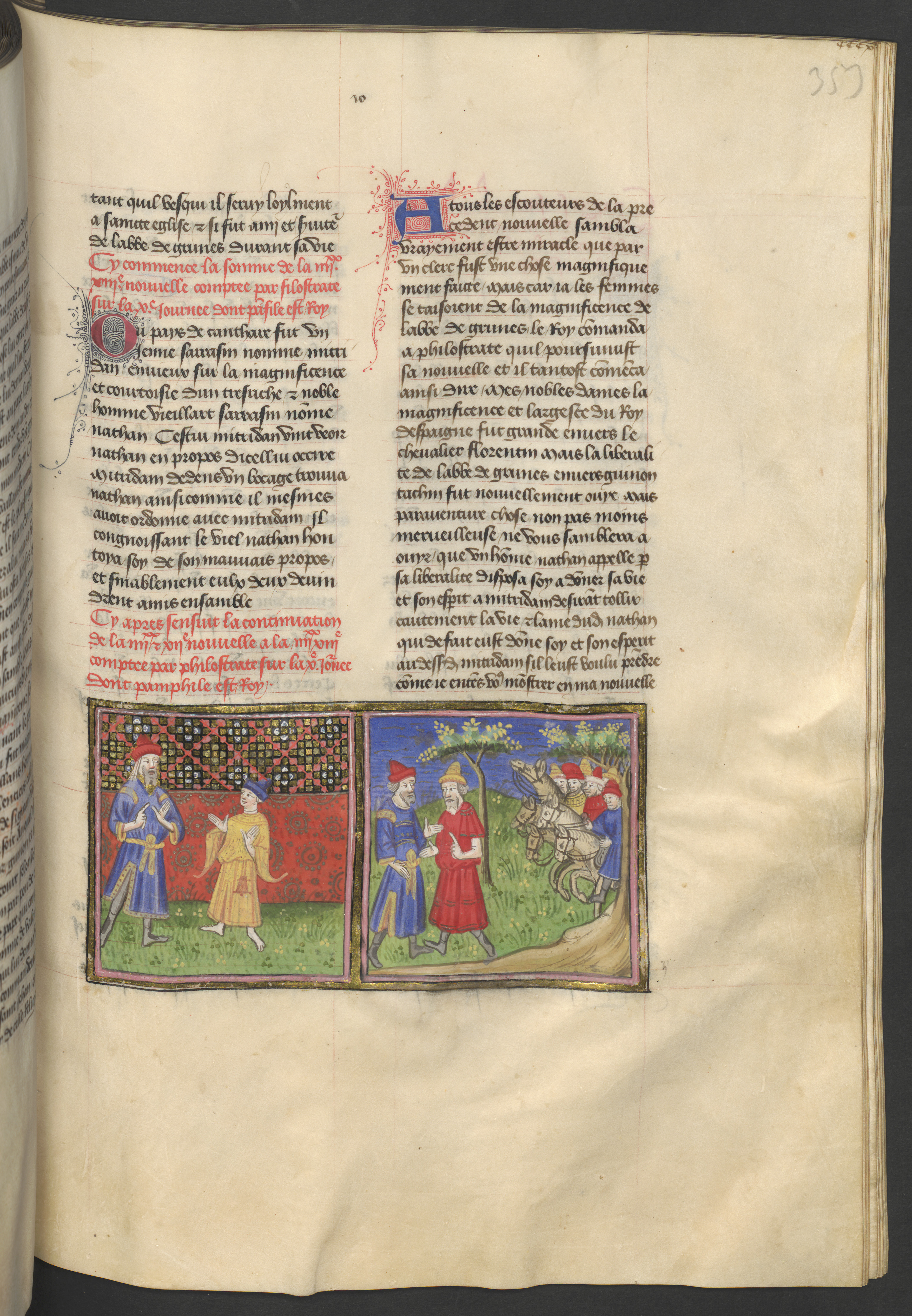 Miniatore francese (1425-1450), Mitridanes incontra Natan; i due uomini si riconciliano