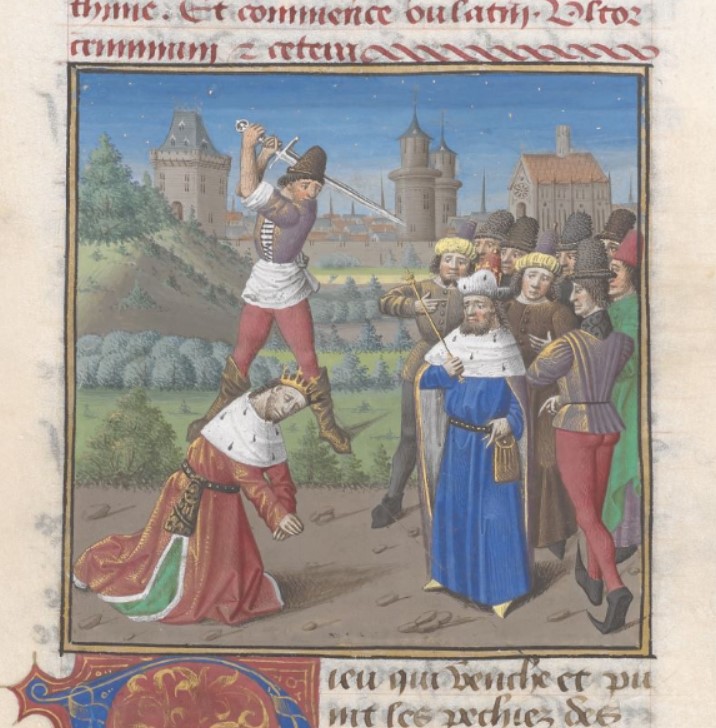 Londra, British Library, Add. 35321, f. 166v. Re Nicomede ordina l'esecuzione del padre Prusia.