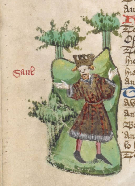 Londra, British Library, Harley 1766, f. 92v. Saul in preda alla follia.