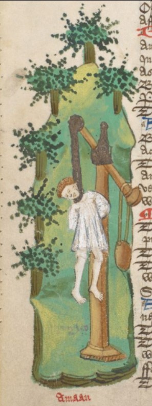 Miniatore inglese (1460 c.), Aman viene impiccato