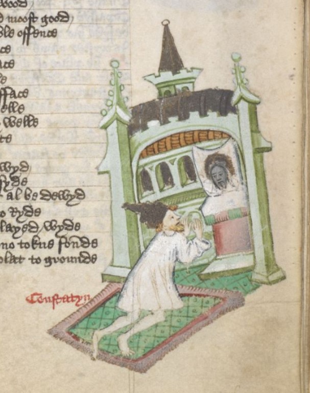 Miniatore inglese (1460 c.), Costantino s'inginocchia dinanzi alla Veronica
