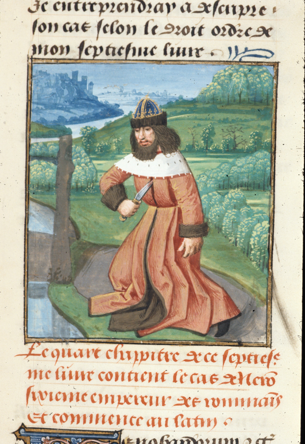 Londra, British Library, Royal 14 E V, f. 365r. Nerone compie il suicidio.