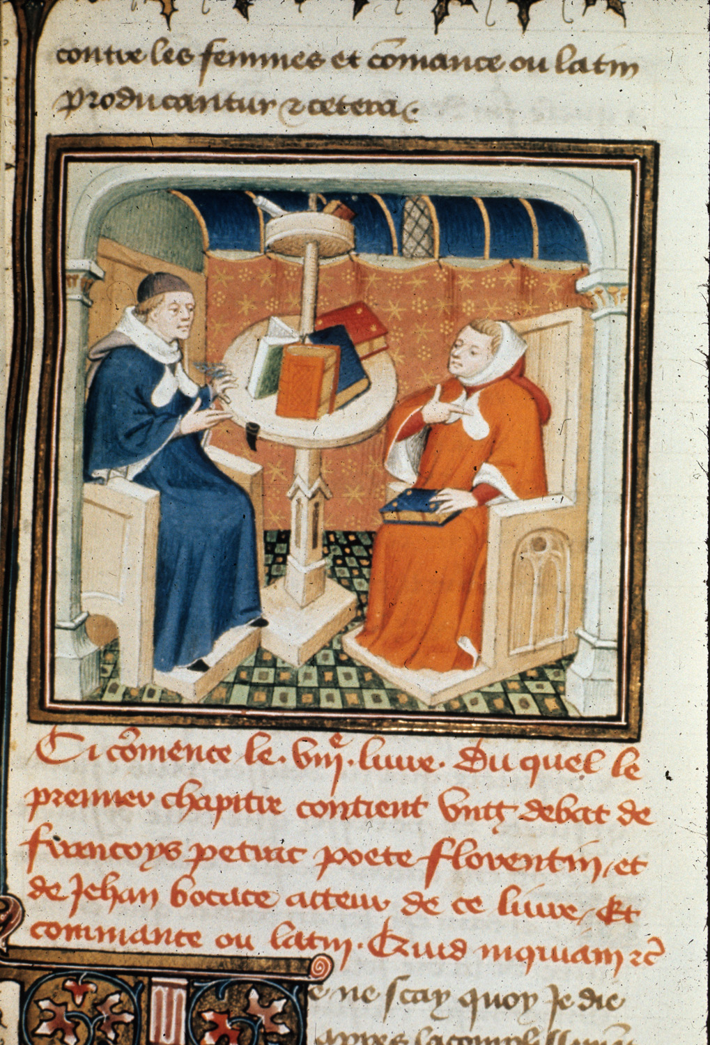 Maestro della Cité des Dames (1420 c.), Petrarca appare a Boccaccio