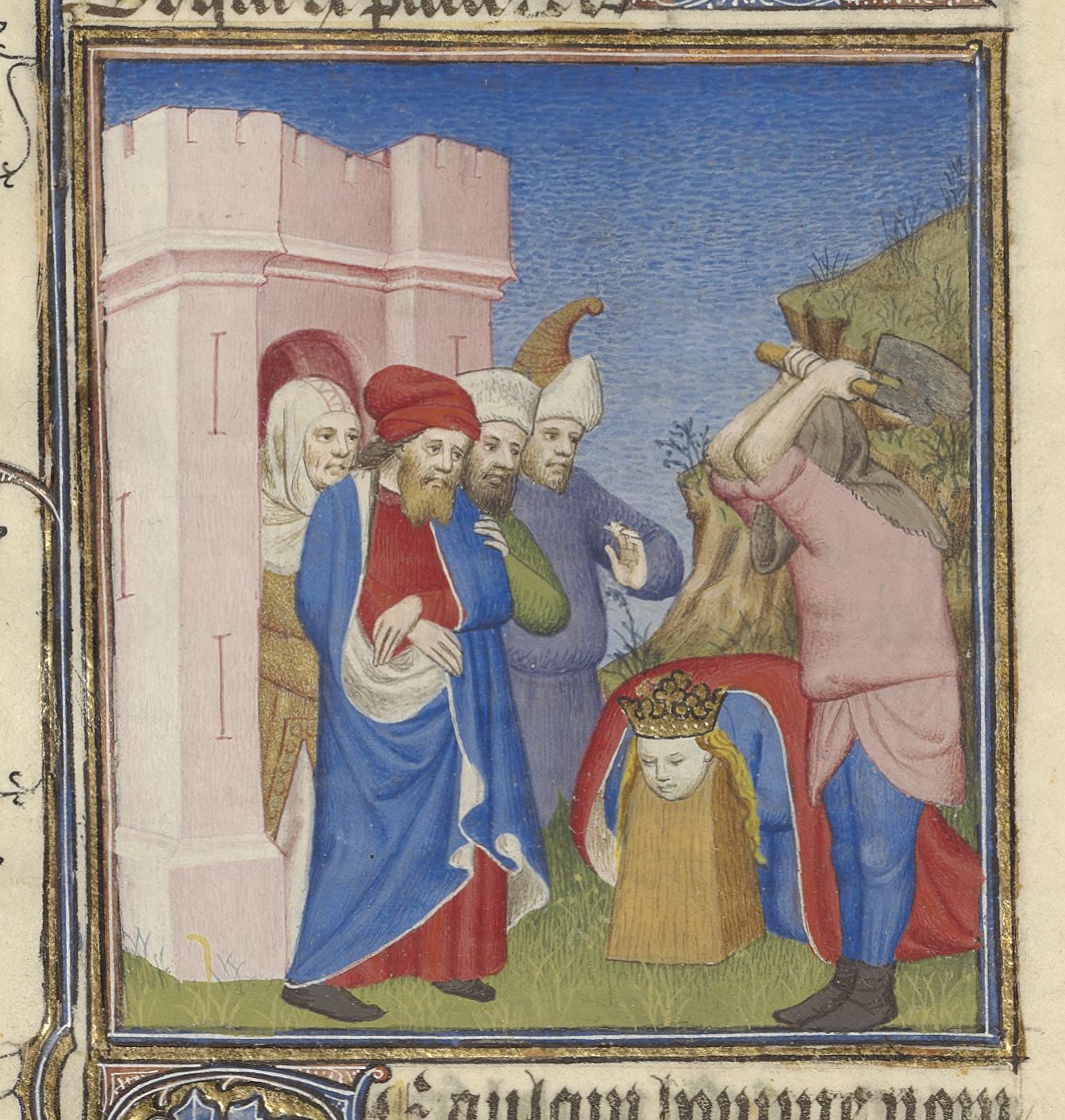 Parigi, Bibliothèque de l'Arsenal, 5193, f. 58v. Atalia viene decapitata.