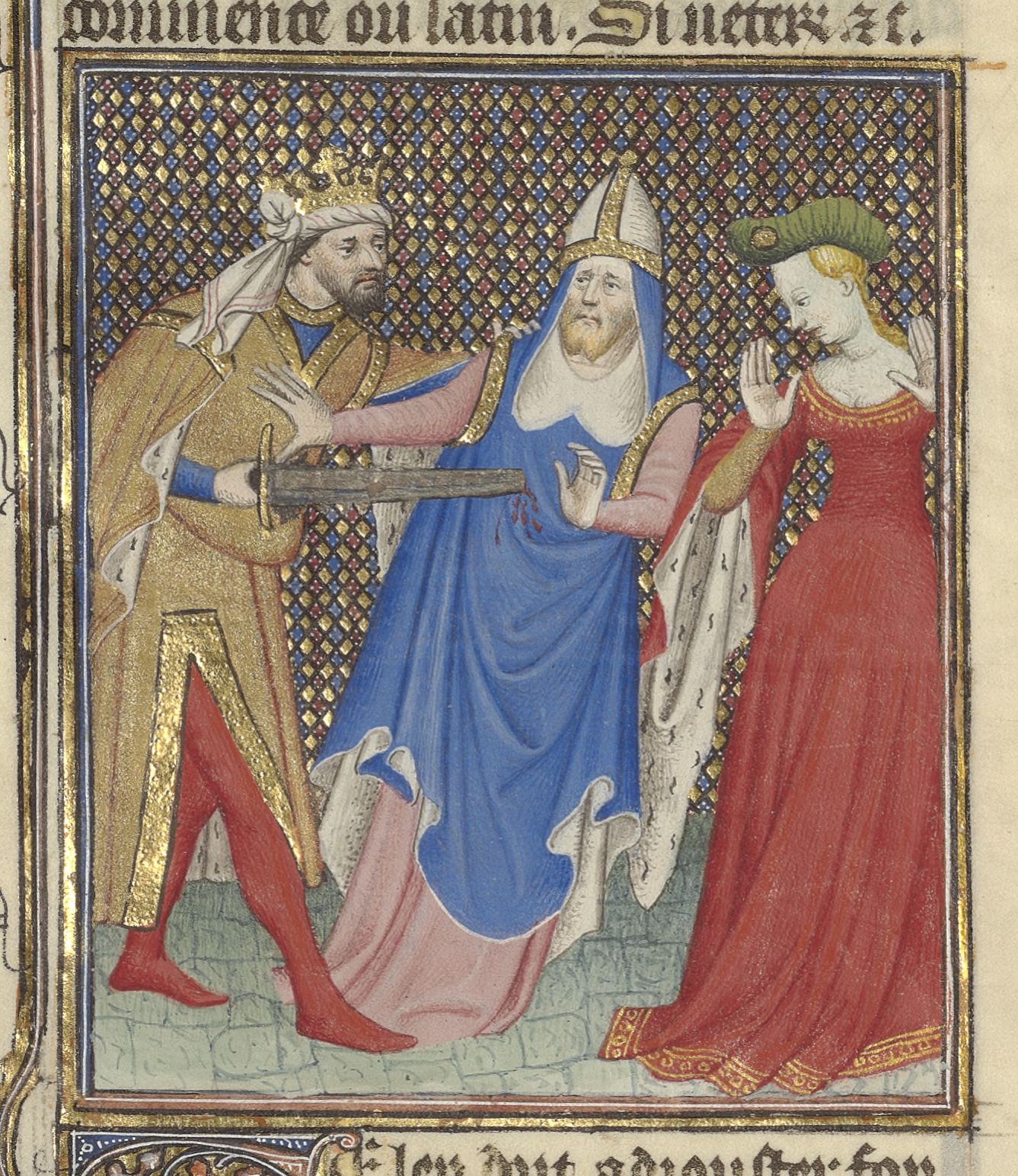 Parigi, Bibliothèque de l'Arsenal, 5193, f. 59v. Sicheo viene assassinato di fronte alla moglie Didone.