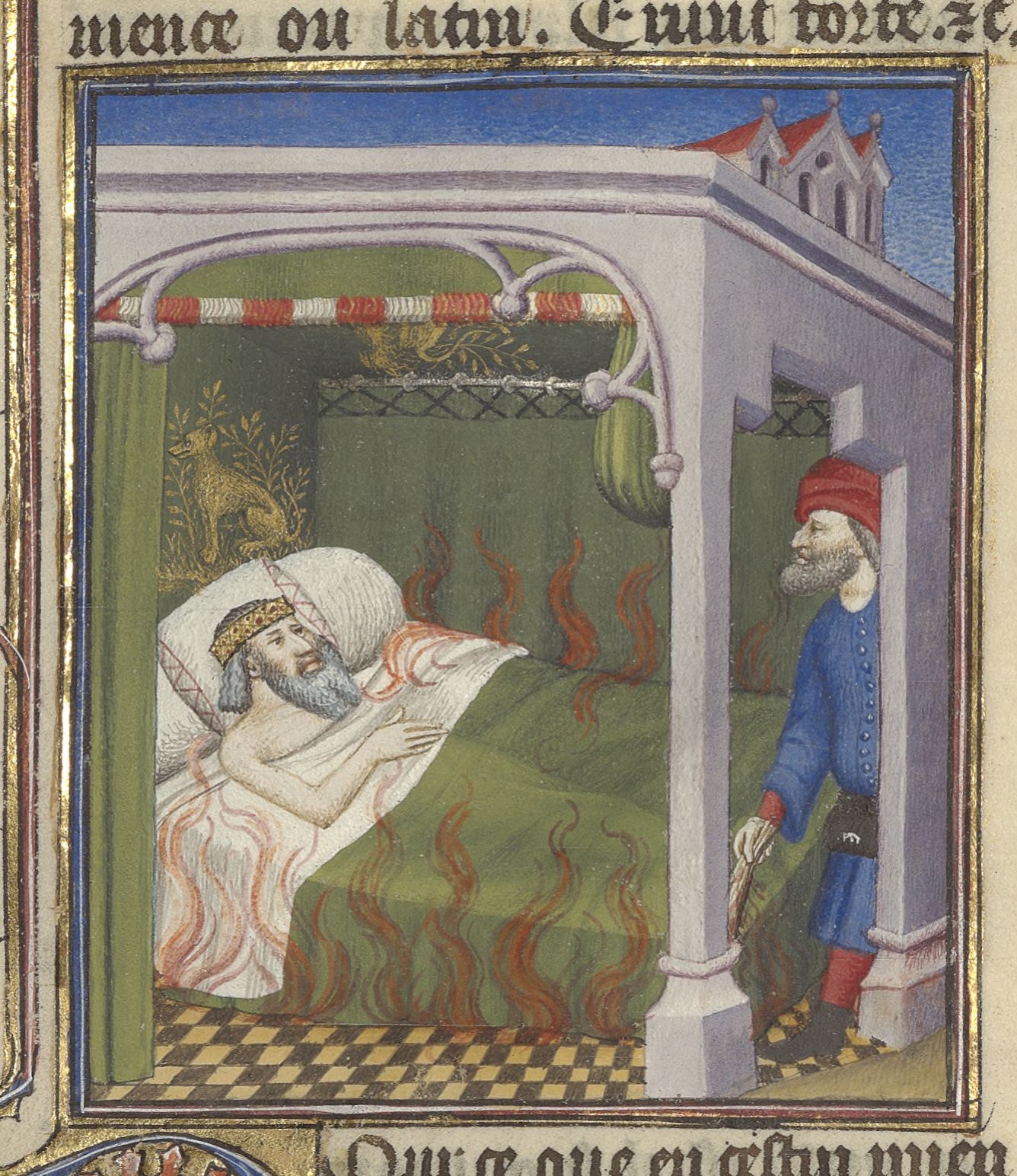 Maestro della Cité des Dames e bottega (1412 c.), Un sicario dà fuoco alla camera di Alcibiade