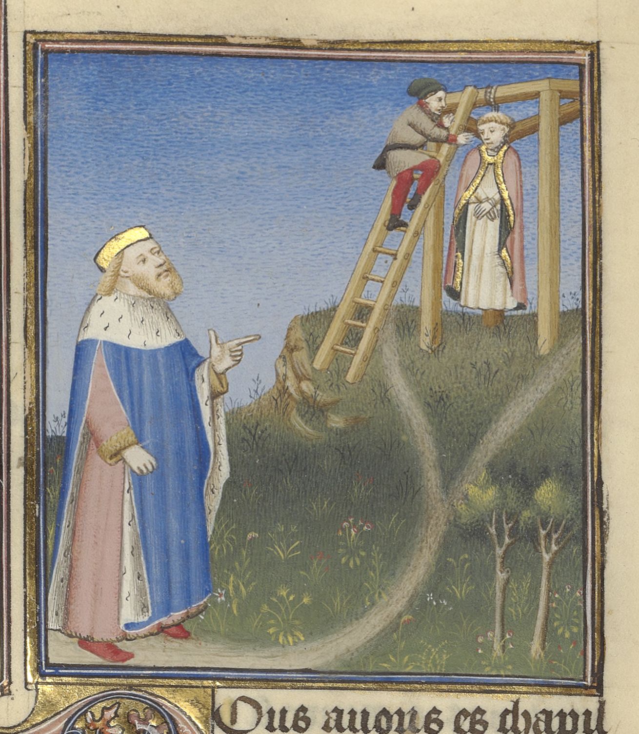Parigi, Bibliothèque de l'Arsenal, 5193, f. 125v. Malco fa impiccare suo figlio, il vescovo Cartalone.