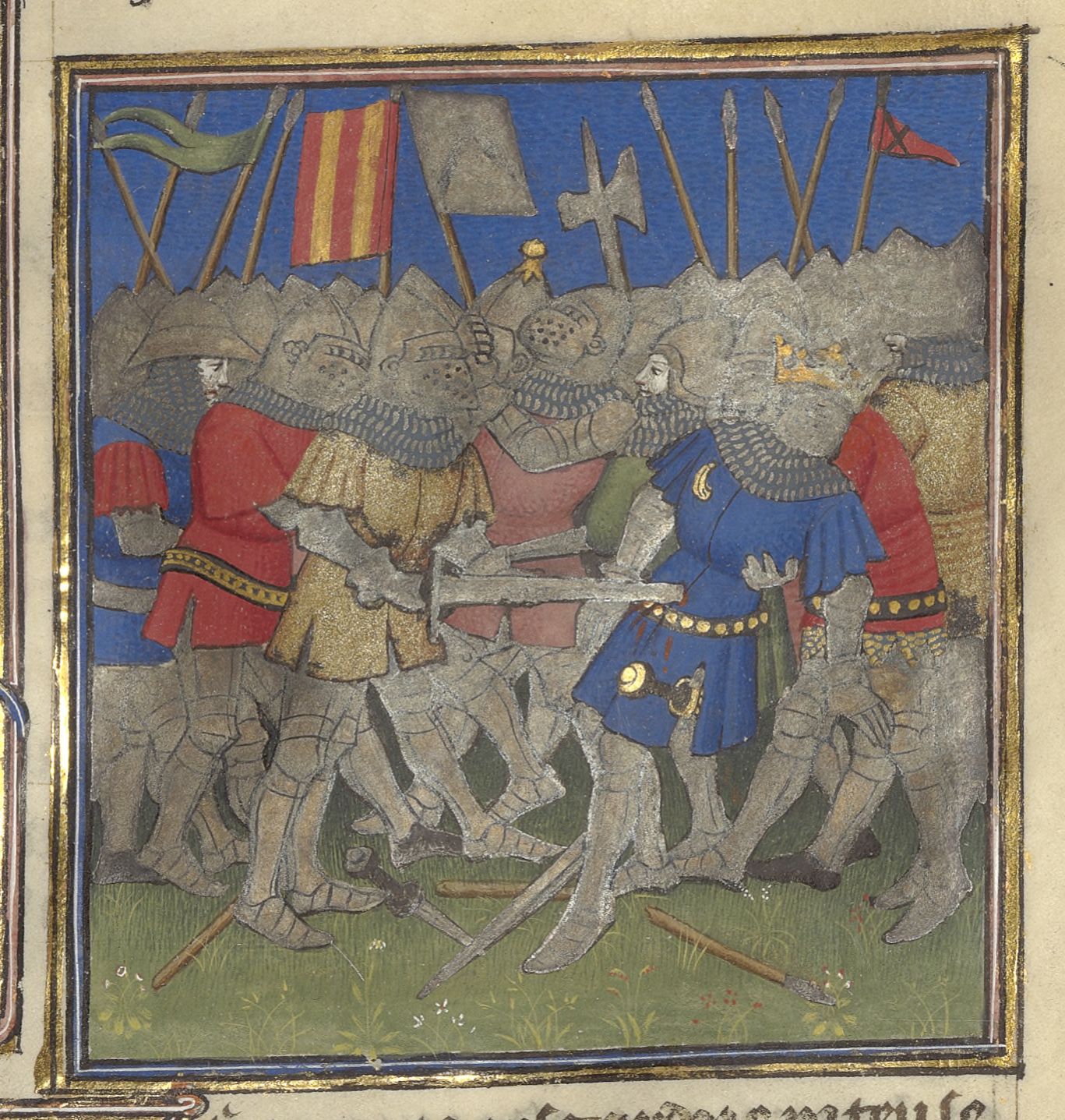 Parigi, Bibliothèque de l'Arsenal, 5193, f. 173r. Tolomeo viene ucciso durante una battaglia contro l'esercito dei Galati.
