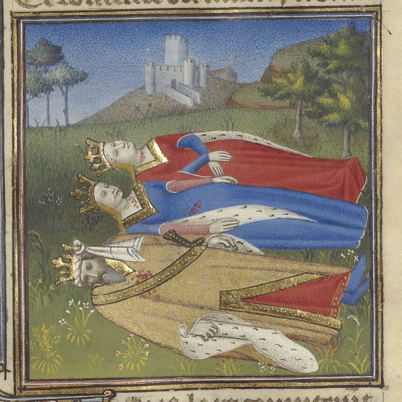 Parigi, Bibliothèque de l'Arsenal, 5193, f. 205r. I corpi di Geronimo, tiranno di Siracusa, di Damarata, figlia di Gerone, e di Armonia.