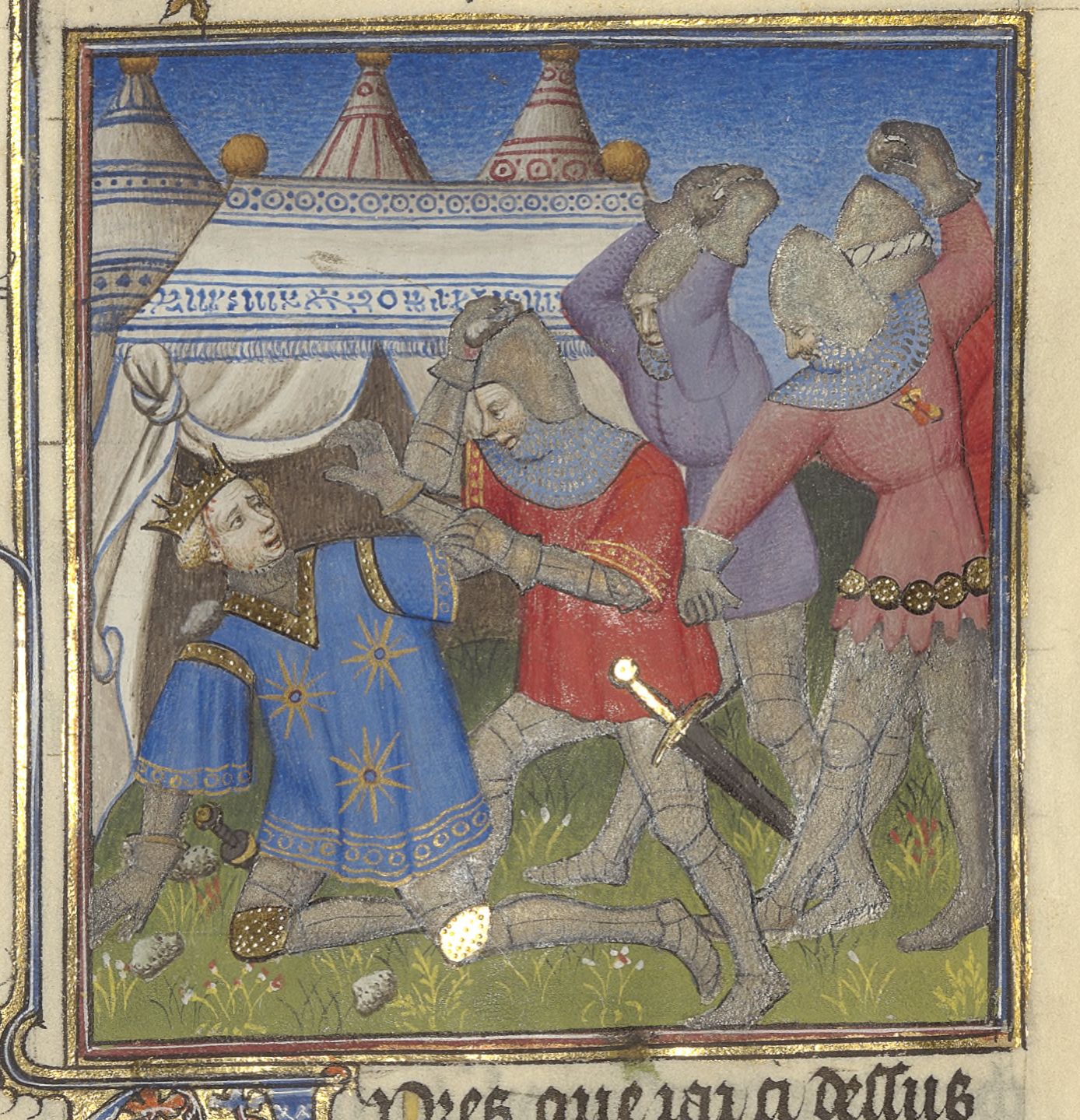 Parigi, Bibliothèque de l'Arsenal, 5193, f. 250r. Postumio Albino viene lapidato dai suoi soldati.