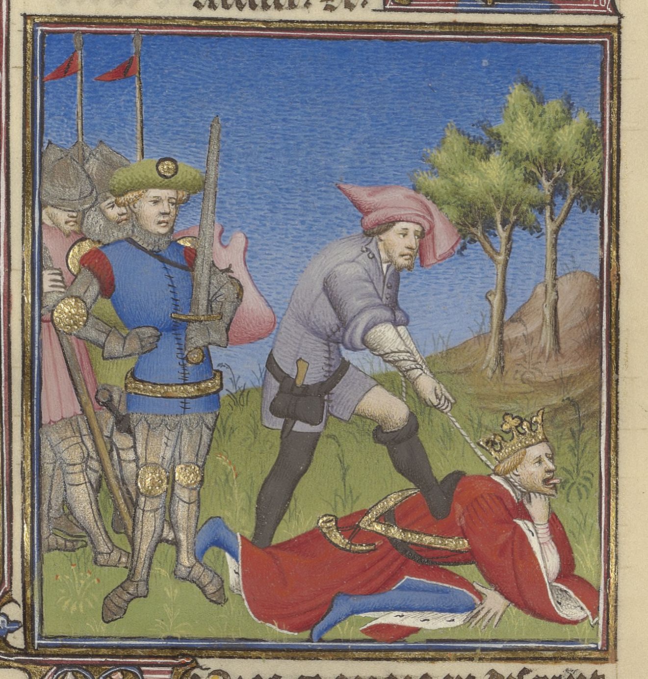 Parigi, Bibliothèque de l'Arsenal, 5193, f. 353v. Narsete fa strangolare Sindualdo, comandante degli Eruli.
