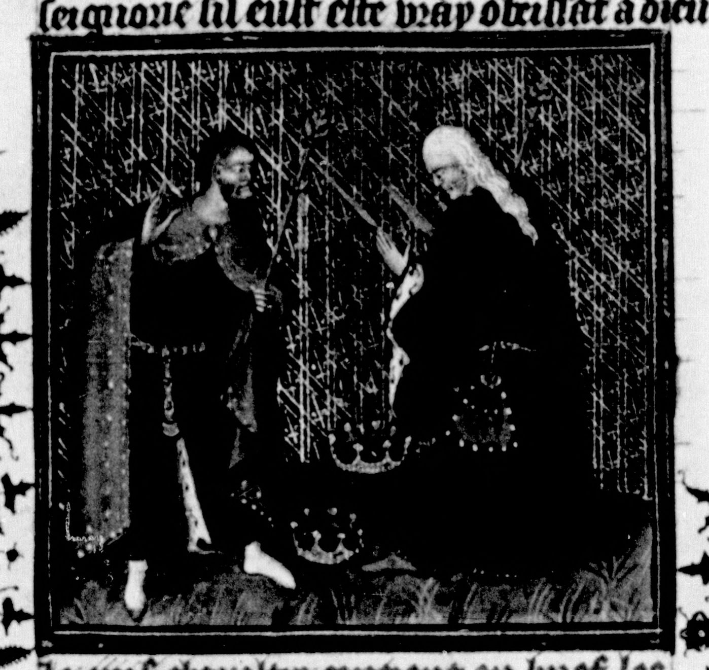 Parigi, Bibliothèque Nationale de France, Fr. 226, f. 37v. I re Adarezer e Adado decaduti gettano a terra le corone.