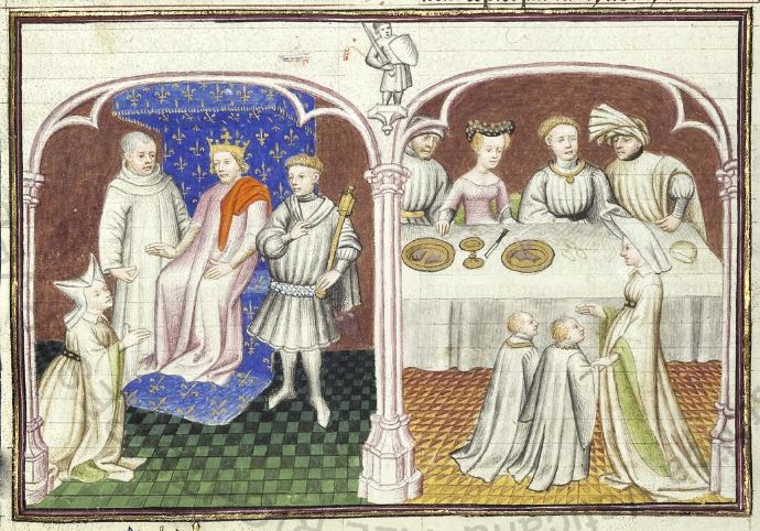 Maestro della Cité des Dames (1414-1419), Giletta chiede al re di poter sposare Beltramo di Rossiglione; Giletta presenta i suoi figli a Beltramo