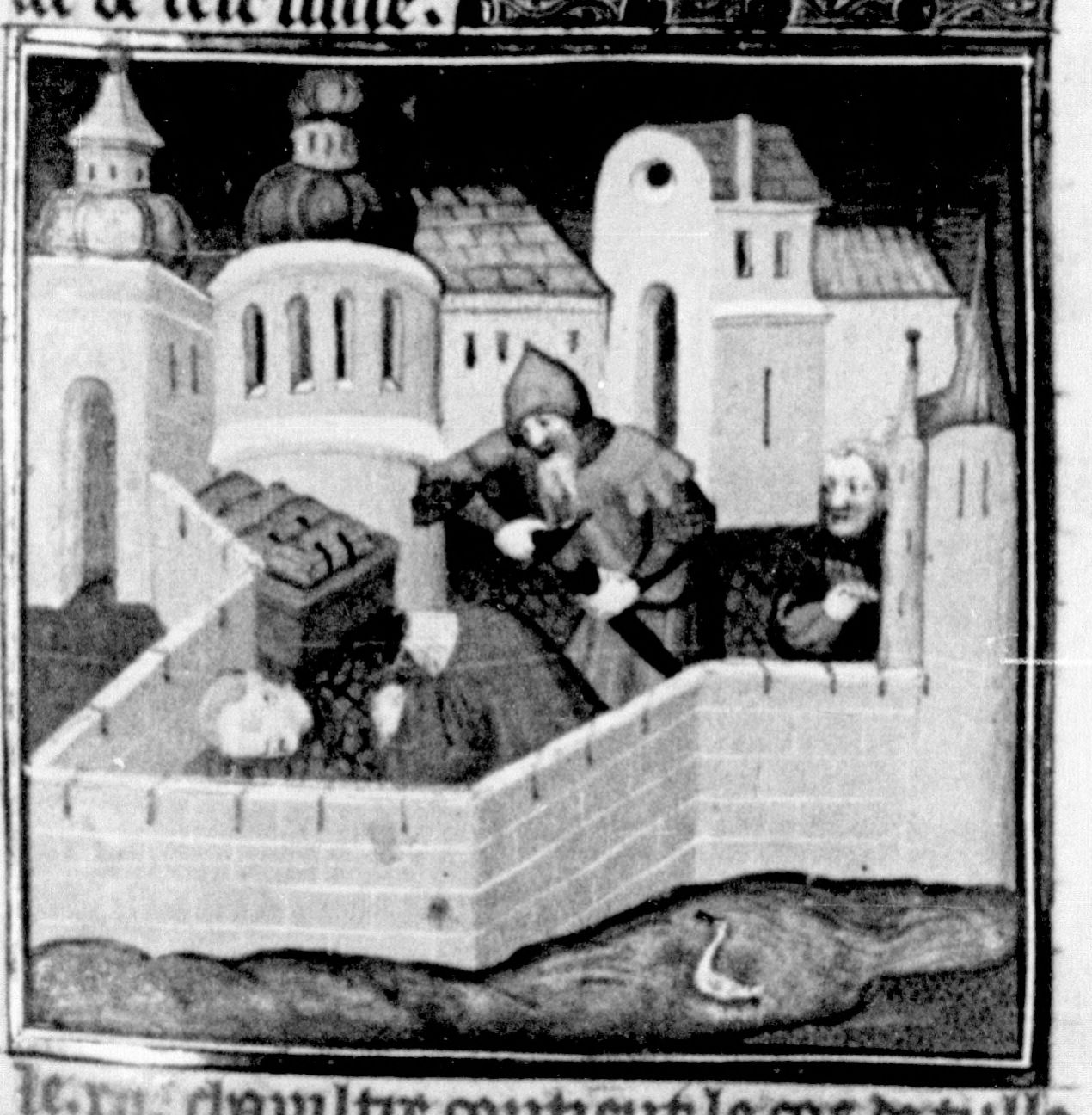 Parigi, Bibliothèque Nationale de France, Fr. 226, f. 178r. Un soldato decapita Cicerone.