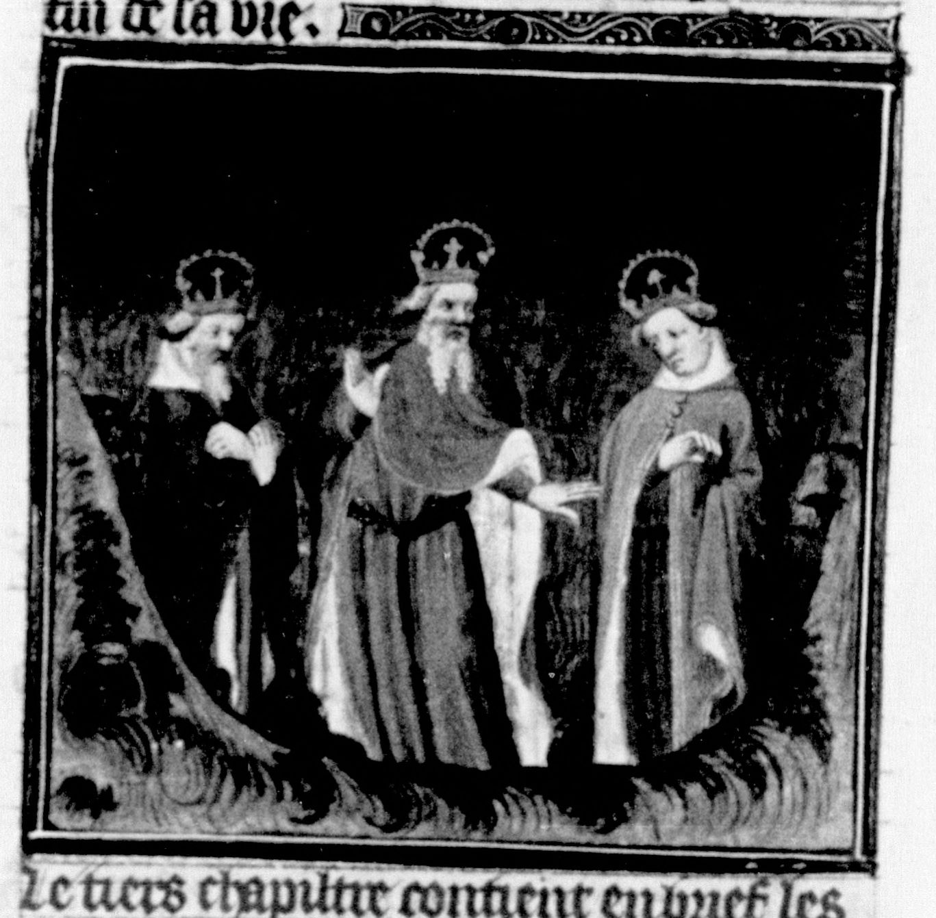 Parigi, Bibliothèque Nationale de France, Fr. 226, f. 191r. Tiberio, Caligola e Messalina all'entrata degli Inferi.