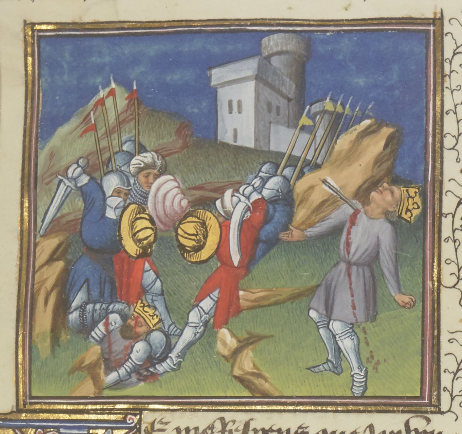 Maestro del Roman de la Rose di Vienna (1435-1440), Zara e Acab uccisi in battaglia