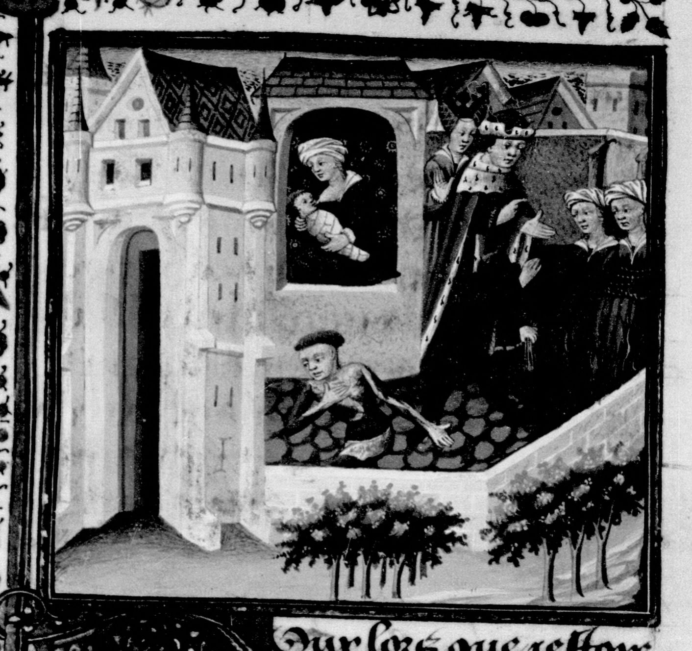 Miniatore francese (1425-1450), Filippa da Catania allatta il principe Ludovico; Filippa arsa sul rogo con la figlia Sancia