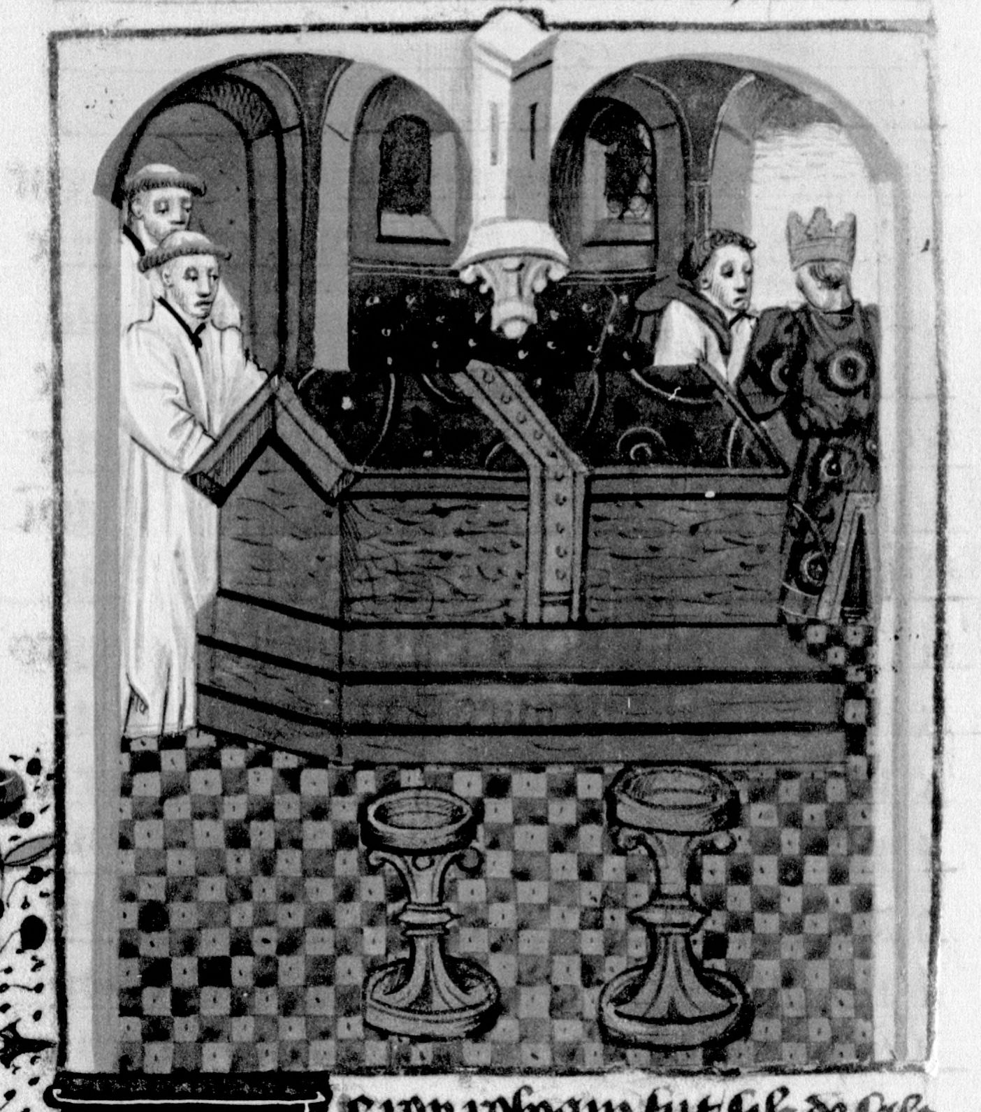 Parigi, Bibliothèque Nationale de France, Fr. 232, f. 38r. Le esequie di Roboamo.