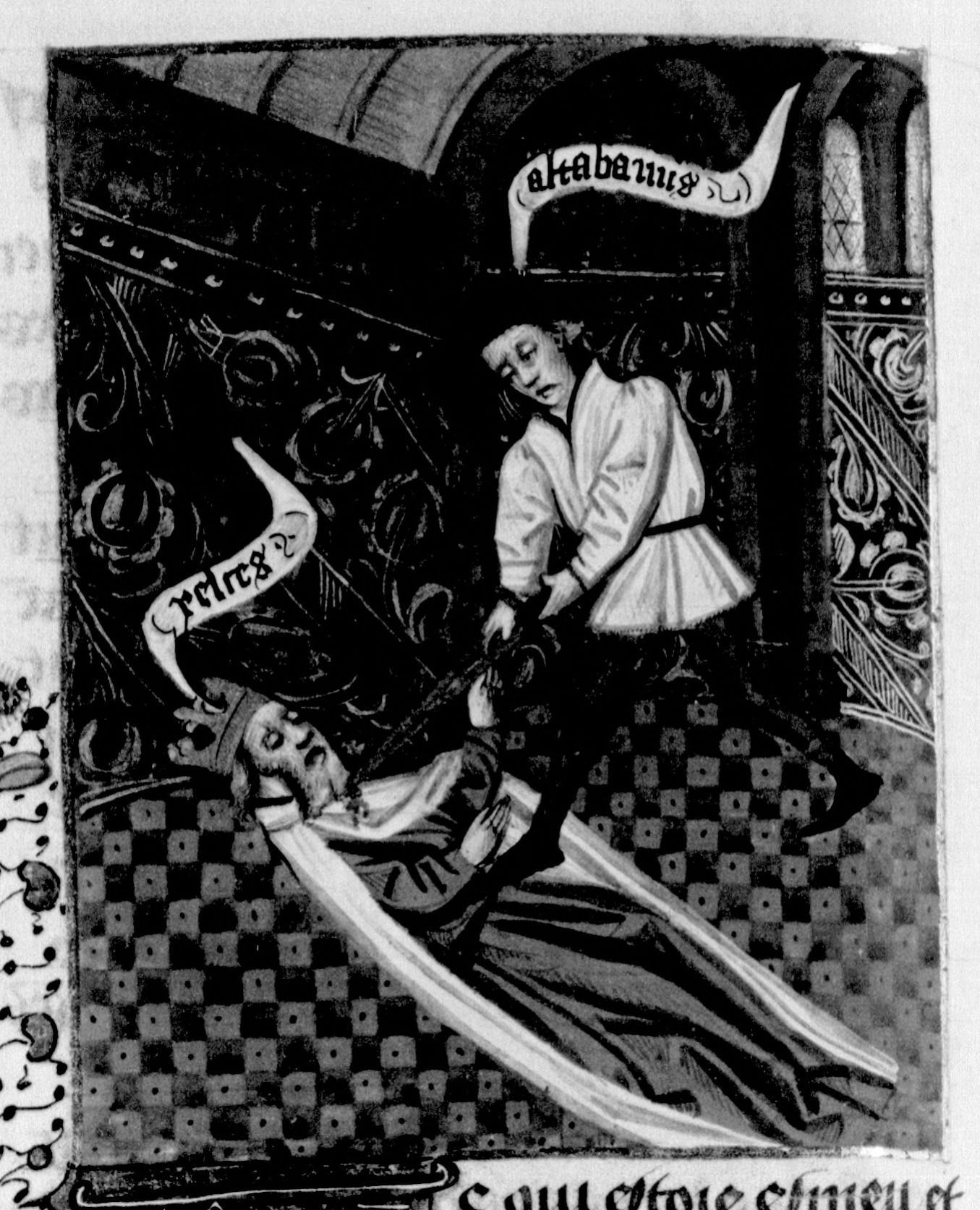 Parigi, Bibliothèque Nationale de France, Fr. 232, f. 90v. Artabano uccide Serse.