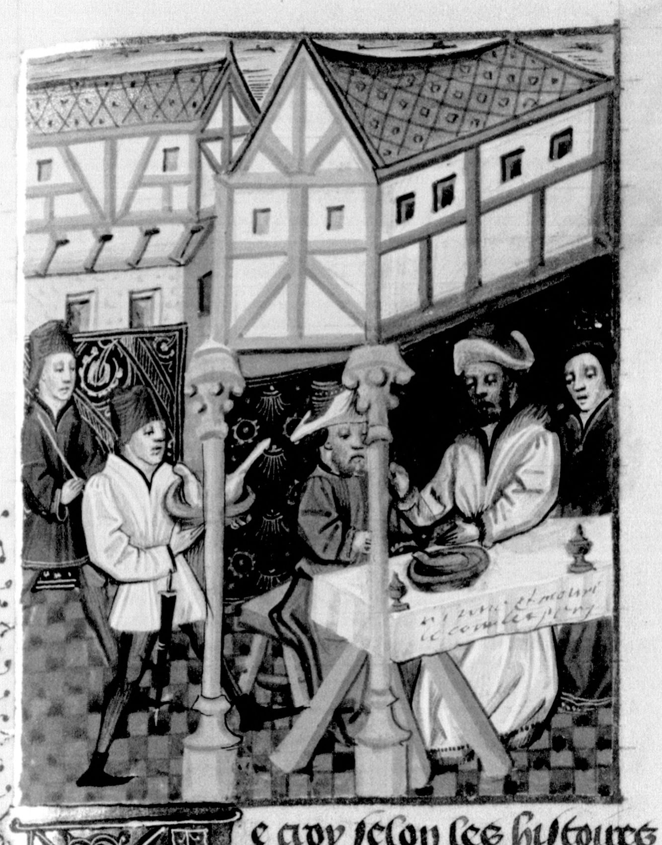 Parigi, Bibliothèque Nationale de France, Fr. 232, f. 105r. Annone offre un banchetto ai cartaginesi.