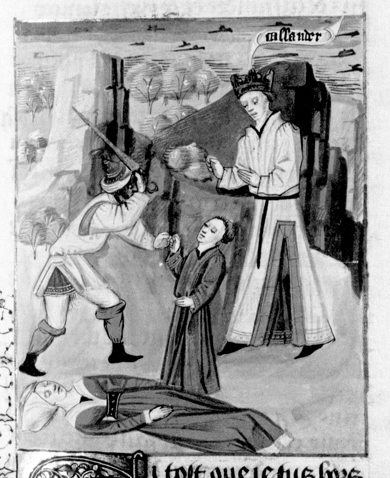 Parigi, Bibliothèque Nationale de France, Fr. 232, f. 140r. Cassandro fa assassinare Barsine e suo figlio Eracle.