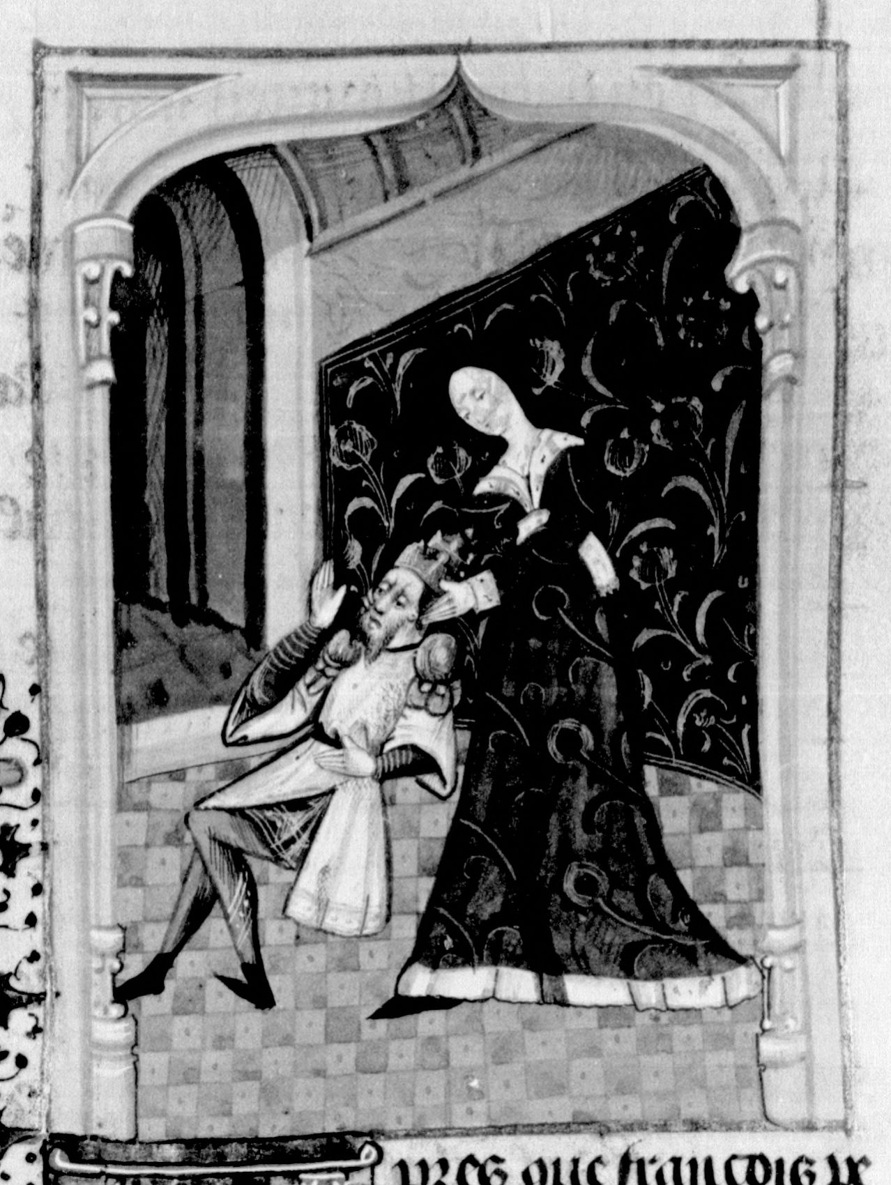 Parigi, Bibliothèque Nationale de France, Fr. 232, f. 269r. Marzia, la favorita dell'imperatore, strangola Commodo nella sua camera.