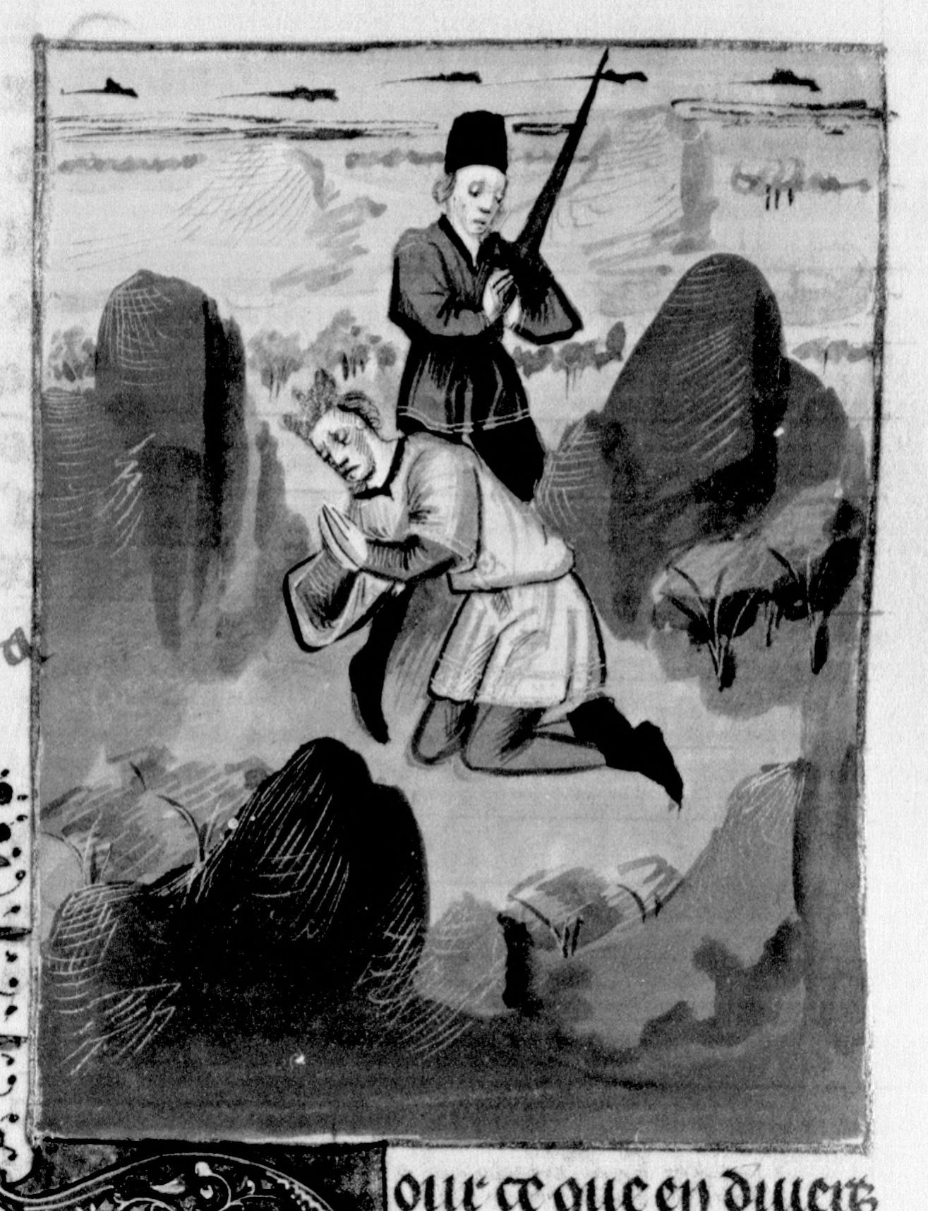 Parigi, Bibliothèque Nationale de France, Fr. 232, f. 296r. Odoacre viene giustiziato.