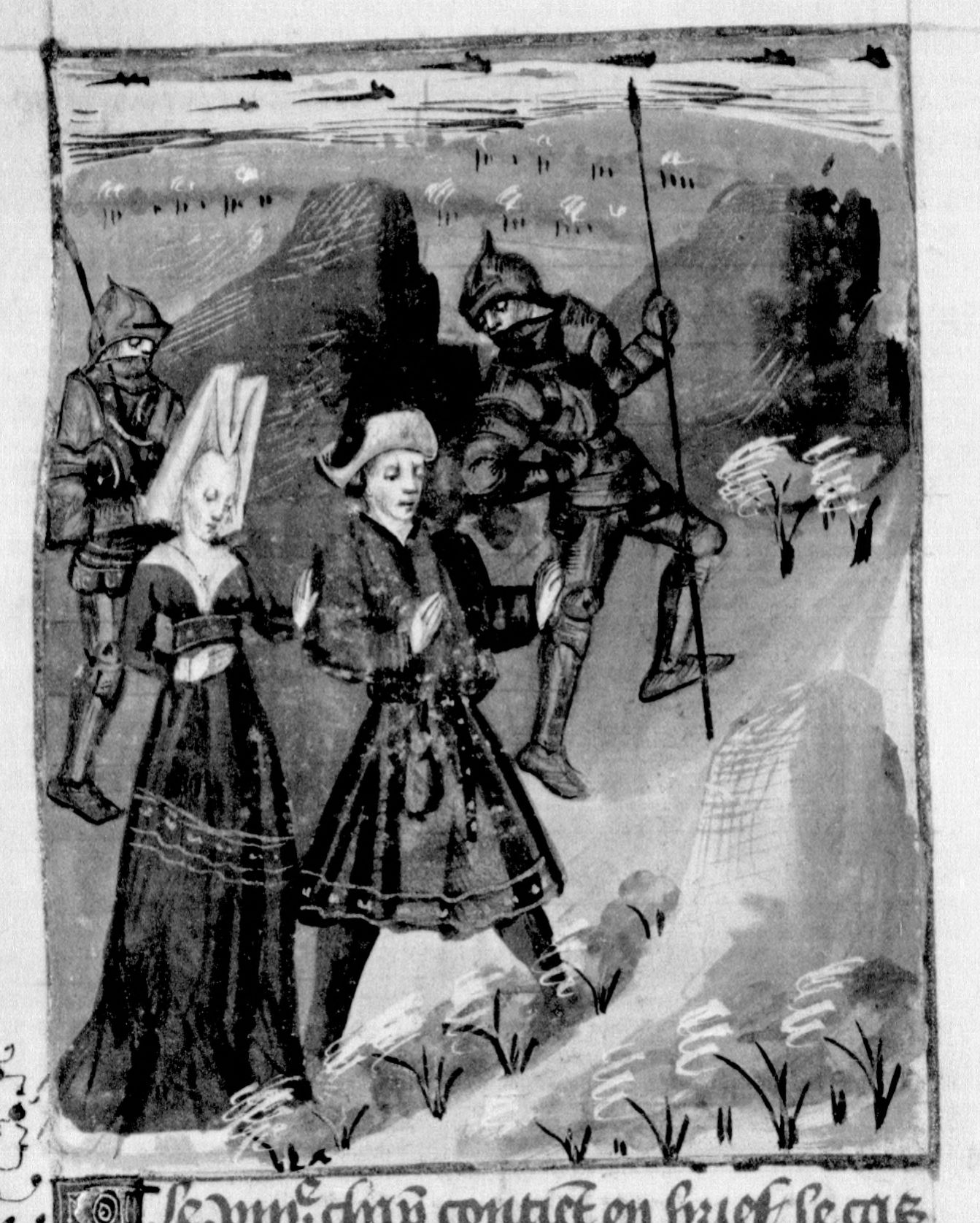 Parigi, Bibliothèque Nationale de France, Fr. 232, f. 322v. Carlo V di Lorena viene fatto prigioniero insieme alla moglie.