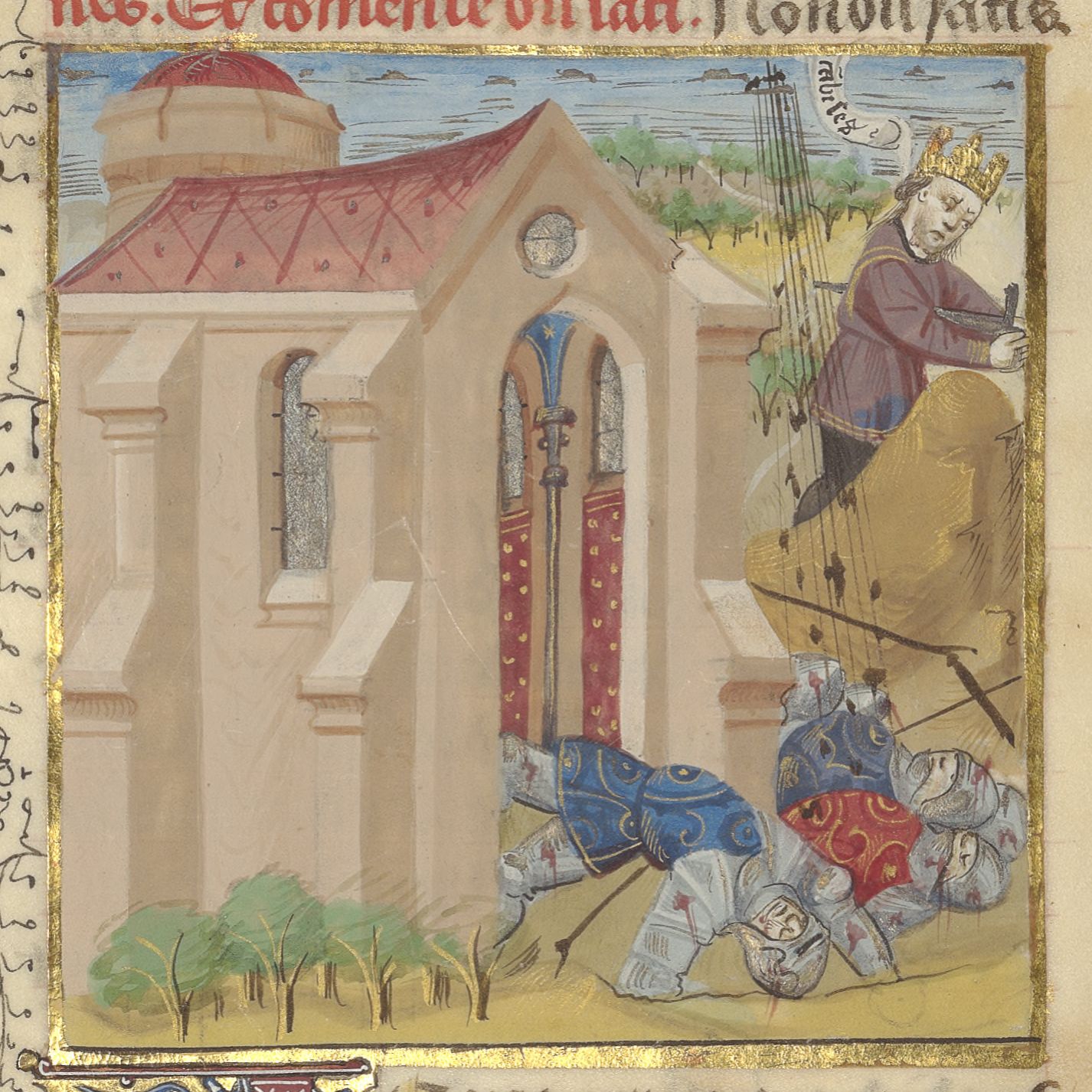 Miniatore francese (1425-1450), Gli uomini di Cambise colpiti da una tempesta; la morte di Cambise