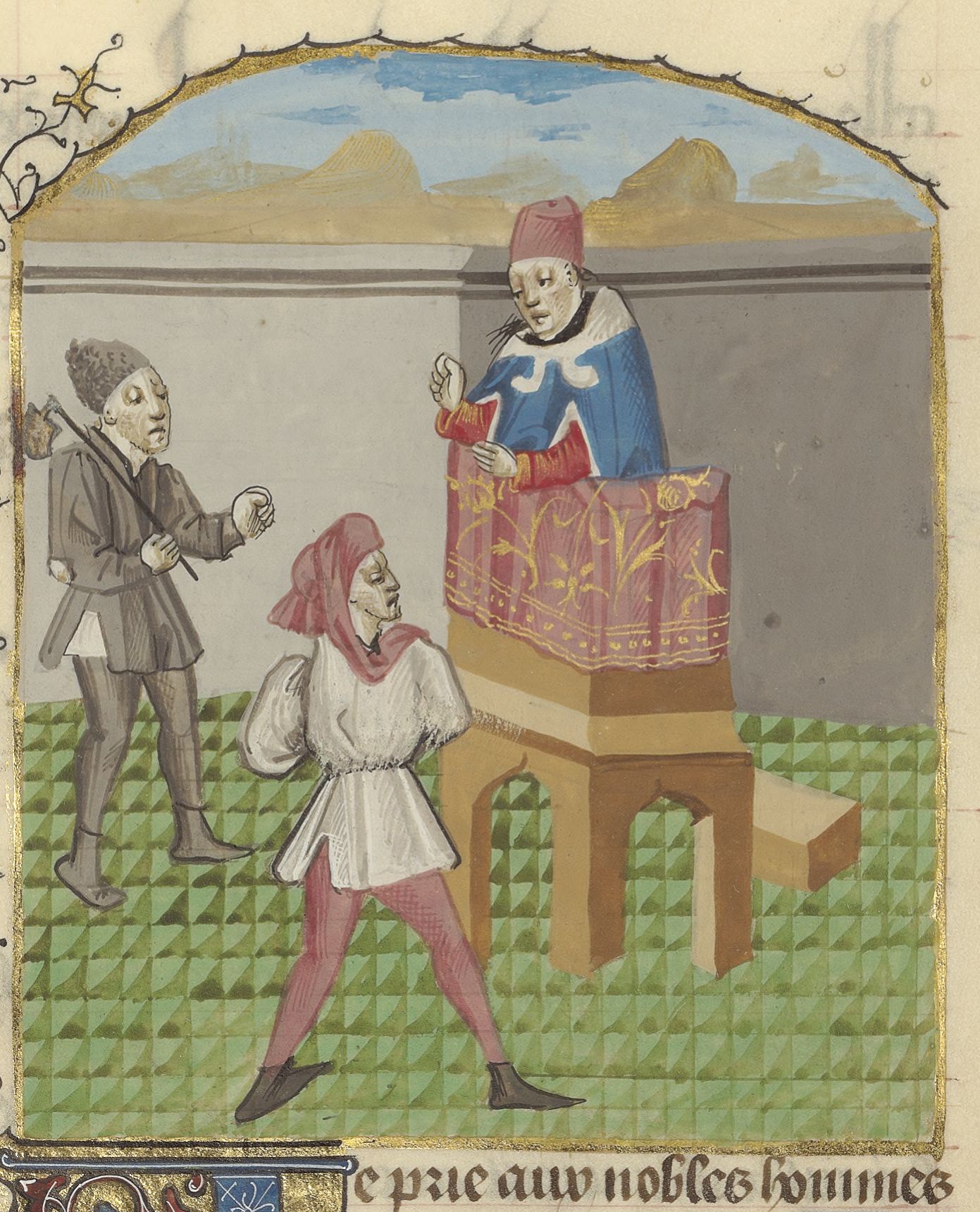 Miniatore francese (1425-1450), Boccaccio rimprovera due uomini sleali