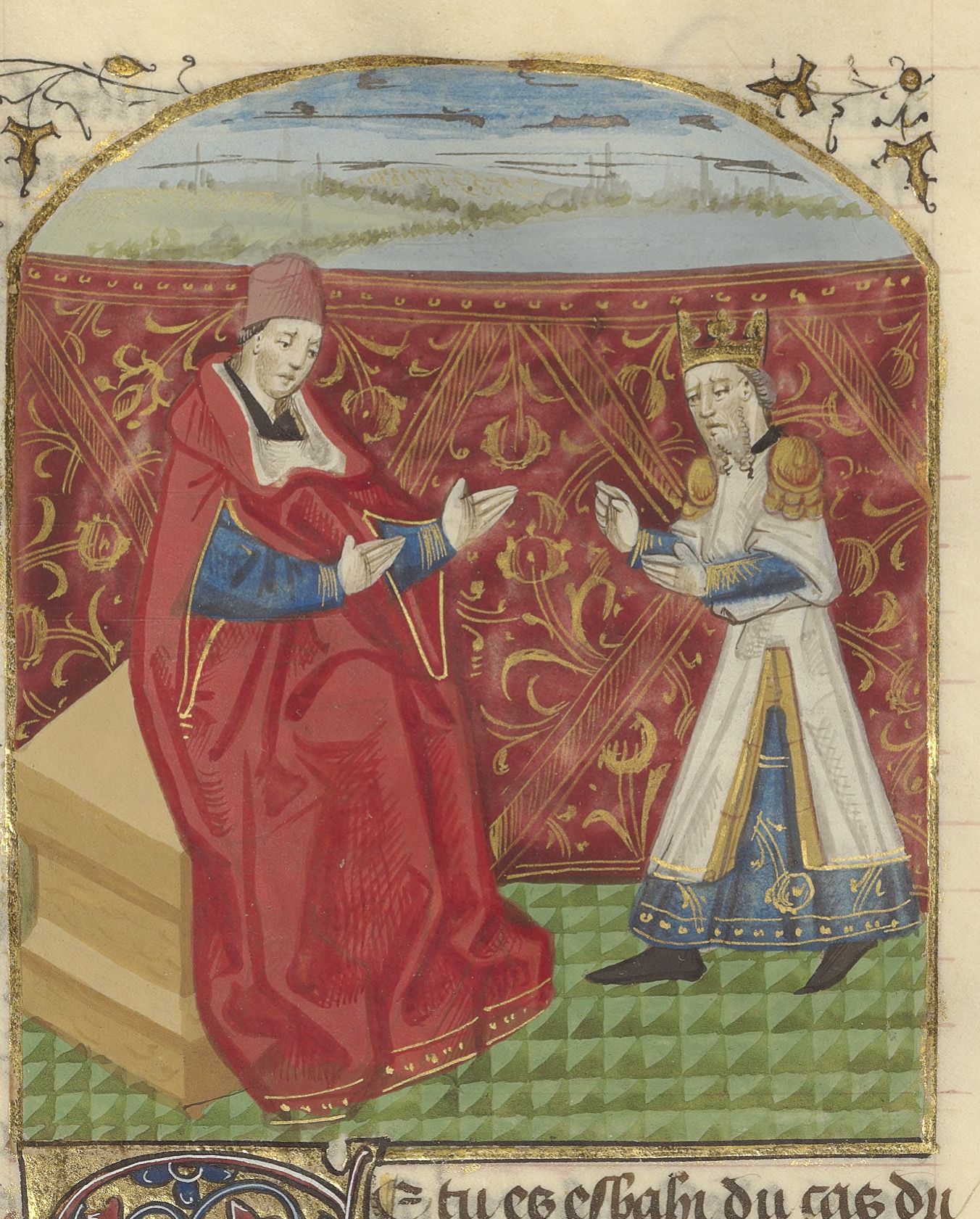 Parigi, Bibliothèque de l'Arsenal, 5192, f. 119v. Giovanni Boccaccio incontra un sovrano.