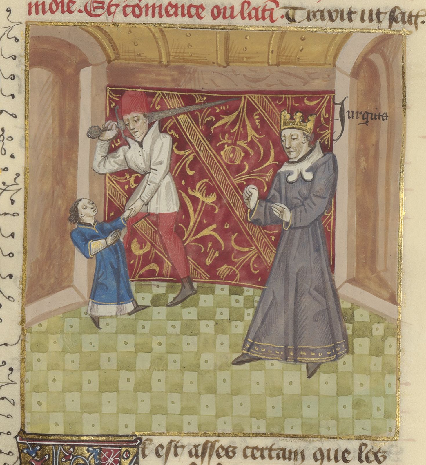 Parigi, Bibliothèque de l'Arsenal, 5192, f. 186r. Giugurta fa assassinare il giovane Iempsale.