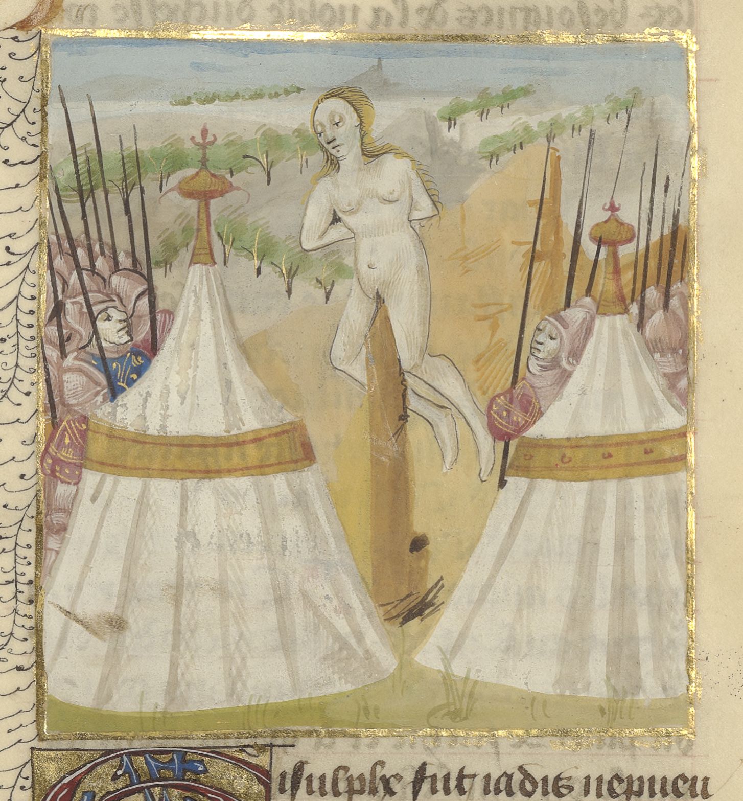 Parigi, Bibliothèque de l'Arsenal, 5192, f. 310r. Romulda, duchessa del Friuli, viene impalata.