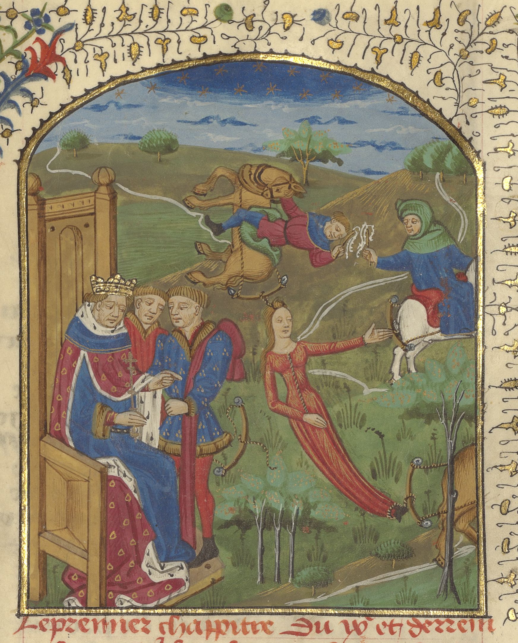 Miniatore francese (1450-1475), Brunichilde viene squartata dai cavalli
