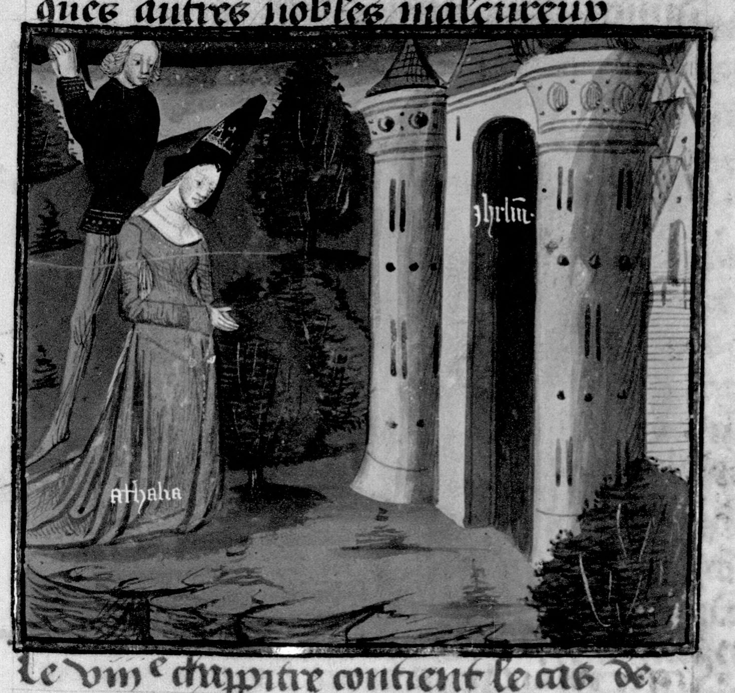 Parigi, Bibliothèque Nationale de France, Fr. 230, f. 37r. Il copista del manoscritto è P. Droulin. La regina Atalia viene decapitata.