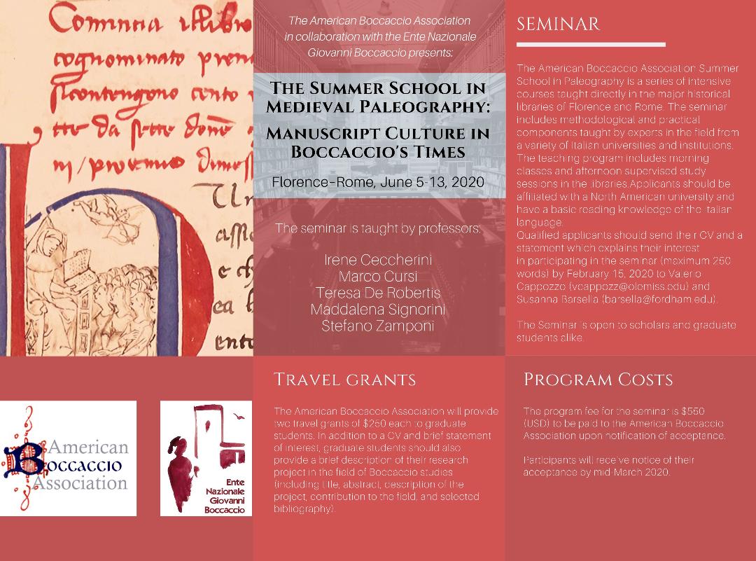 The summer school in medieval paleography: manuscript culture in Boccaccio's times