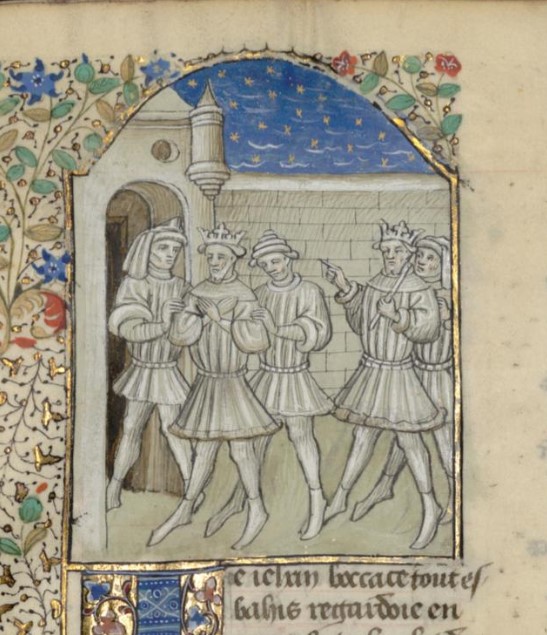 Parigi, Bibliothèque interuniversitaire Sainte-Geneviève, 1128, f. 341v. Un sovrano viene condotto in prigione.